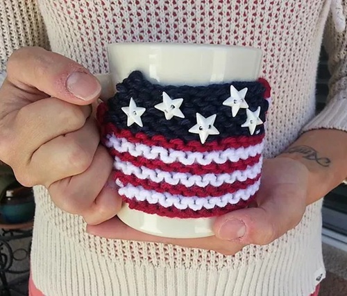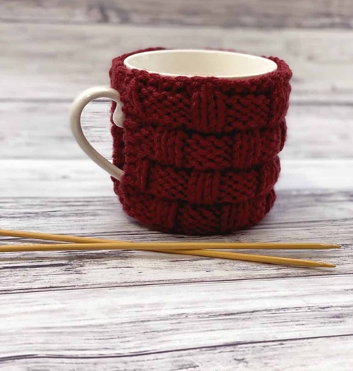 The basketweave knitted mug cozy is a great project by Amanda Saladin. It’s a great project for those who like neat design. The classic woven texture gives the mug a clean, structured appearance, and the stitches are easy enough for any confident beginner to handle.