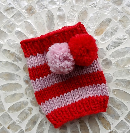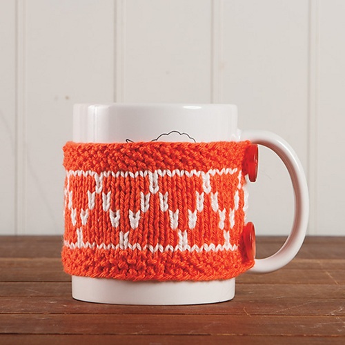 Alexandra Davidoff is behind this lovely cup cosy. The two pom poms on it make it more attractive and a perfect gift for your loved one. It’s quick to knit and a nice little project for everyday knitters.