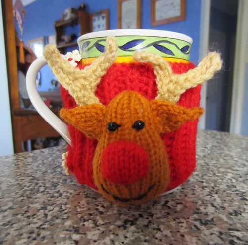 This reindeer cup cosy from Jenny Stacey is a cute and easy design that gives your mug a small festive touch. It has a simple reindeer detail that stands out without being difficult. All you need is DK yarn and just a little bit of crocheting for the antlers and button loops.
