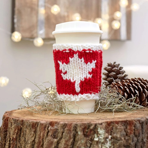 The maple leaf cup cozy by Yarnspirations is a simple and neat design featuring a clear leaf motif that adds a touch of seasonal charm. This cozy is great for fall vibes, quick gifting, or just adding a bit of charm to your daily tea or coffee.