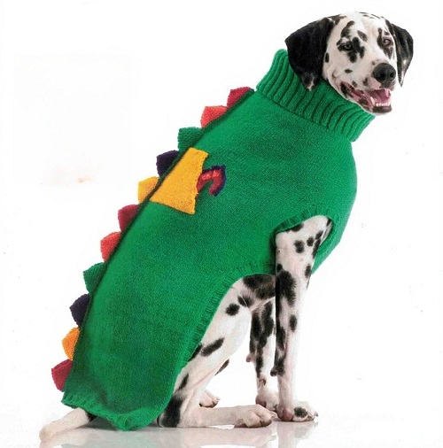 Turn your dog into a prehistoric creature this winter. This endearing dinosaur dog coat pattern is available on Etsy, featuring a colorful row of triangular spikes and a ribbed turtleneck collar.