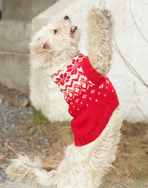 Get your pet ready for Christmas with this lovely Santa Claus sweater pattern, designed by Garnstudio. It is knitted in a traditional Norwegian pattern, and the available sizes are XS, S, and M.