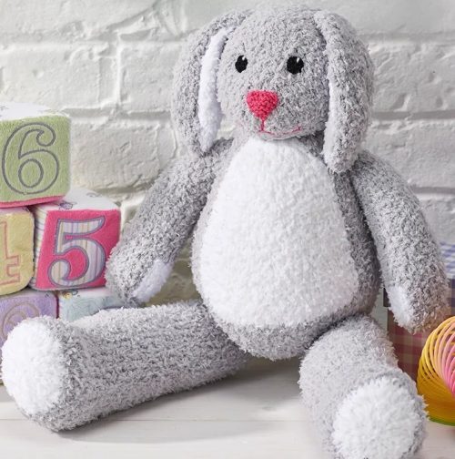 A snuggly rabbit by Ann Franklin is perfect for intermediate knitters or enthusiastic beginners. The knitting tension is 21 stitches and 30 rows to measure 4 x 4 inches over stockinette stitch using US 3 needles. Buy it on Amazon. It will bring a cozy charm to your celebrations.