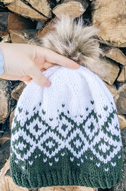 A great beanie pattern by Spruce Hill Knits is a quick knit-up and cozy. It is suitable for beginners in colorwork knitting, as only two colors are involved, and it measures approximately 8.5 inches high after blocking.