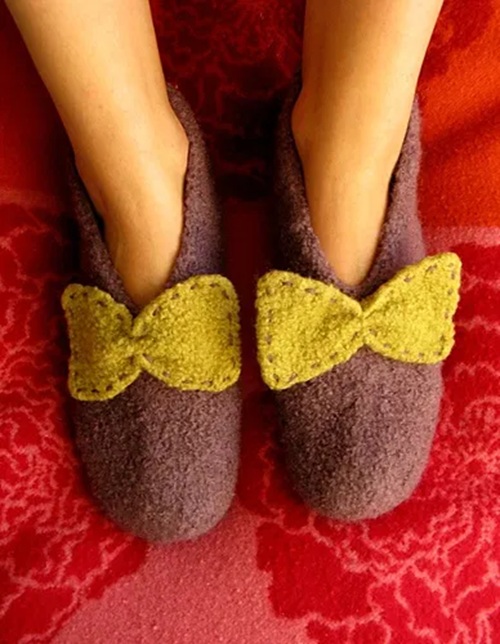 If your child loves bows, these felted slippers are a must-have. Your child will be the center of attention at any event with these cute bow slippers. Elina Urmas is the artist of it. The slippers are knitted with simple shaping, making them easy to work on even for those with basic skills.