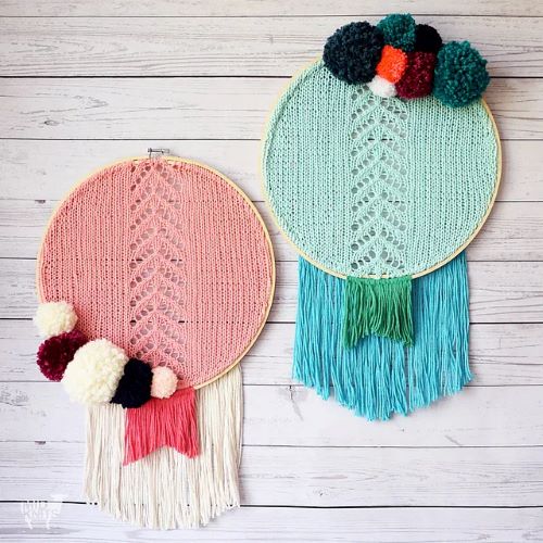 Bring the boho vibes into your house with this resplendent decorative piece by Erin Black. The knitting gauge for this pattern is 15 stitches and 23 rows = 10 cm in stockinette stitch.