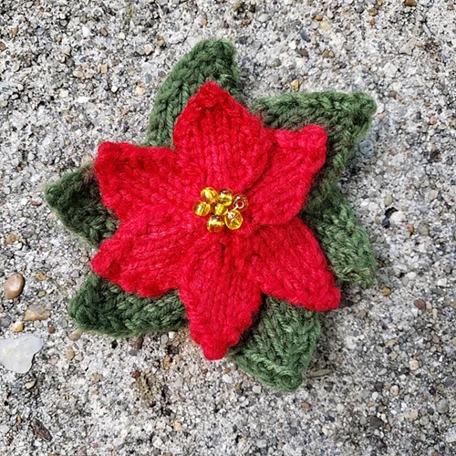 9. Knitted flower brooch: poinsettia knitting pattern