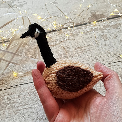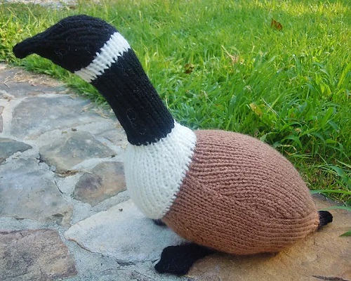 Nicky Stewart had designed this pearl, the Canadian goose. It is a small, charming project that can easily be knit with DK yarn. Plus, its black neck and head, light-toned body, and contrasting patch on the back give it a realistic look.