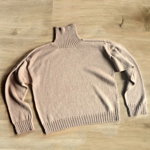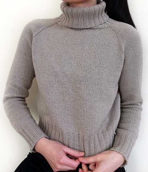 Doesn’t this knitted turtleneck sweater by Handmade By Aura look cozy and clean? All you need is Drops Cotton Merino with 2.5mm & 3.5mm circular needles, plus some k2tog, purl, M1L, M1R stitches.