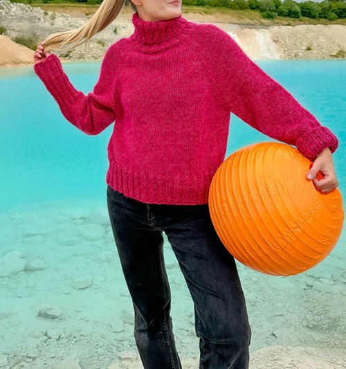 The relaxed raglan turtleneck, designed by Premier Yarns which feels easy and comfortable, with a loose fit that makes it great for everyday wear. Its raglan sleeve construction gives the sweater a smooth shape that sits nicely on the shoulders without feeling tight.