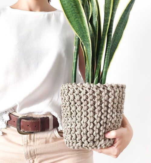 2. Knitted Plant Cozy