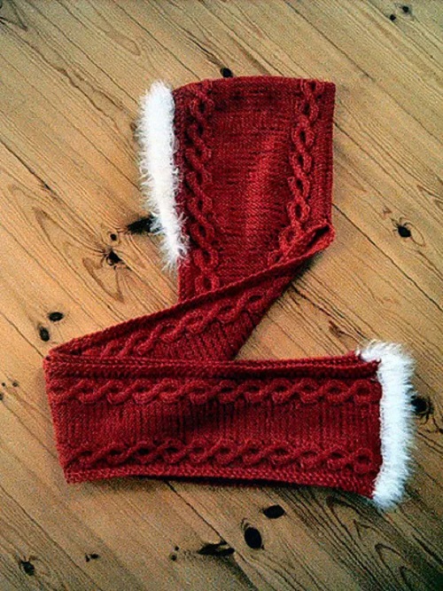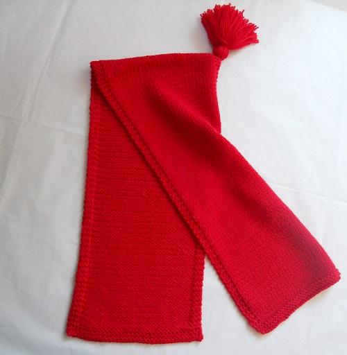 A hooded scarf, quick and easy to make, is a perfect Christmas gift and especially for the one who loves the Red Riding Hood tale. It is worked in the stocking stitch with the first and last three stitches in garter stitch on each side until the total length measures 100-120-130 cm. Tricotting Handmade Knitwear has provided this pattern.
