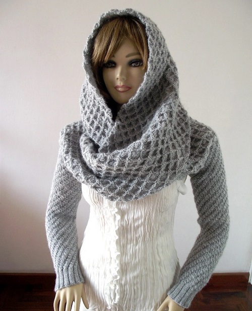 10. KNITTING PATTERN HOOD scarf with Sleeves