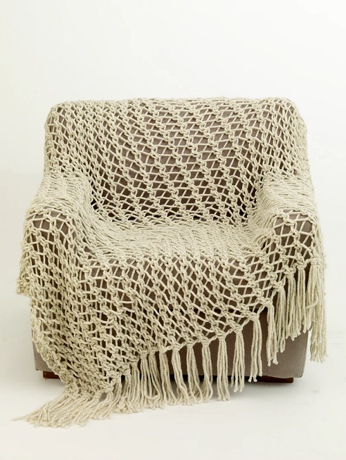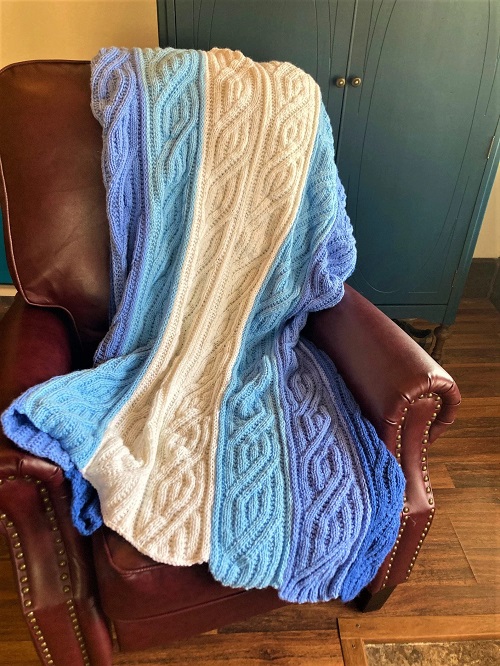 The gorgeous afghan pattern by ThePurplePorcupine consists of a beautiful Ladder Rib Stitch & Cable Design. Doesn’t it remind you of swirling rivers? You can knit this beautiful blanket in any colors of your choice.