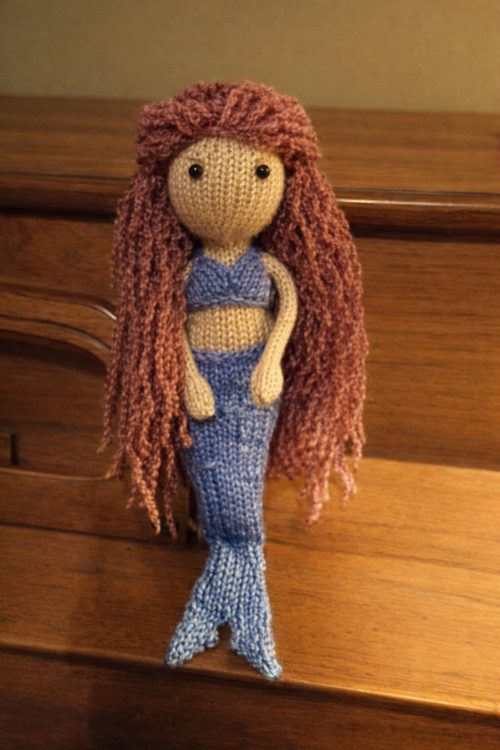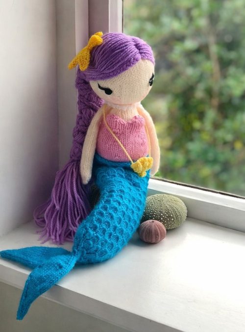 An intermediate skill-level mermaid pattern by Knitter Bee Shop, featuring a purple braid, purse, and necklace, is the stylish one in the list. It is knitted in the round with basic knit stitch, increases and decreases, and basic embroidery skills.