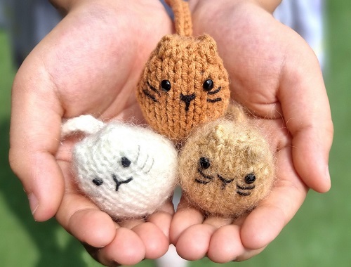 Are you new to knitting? Then this pattern by Liz Wray is suitable for you. The cats’ faces are made of felt, and their eyes are buttoned. You can even embroider them along with a face for small children.