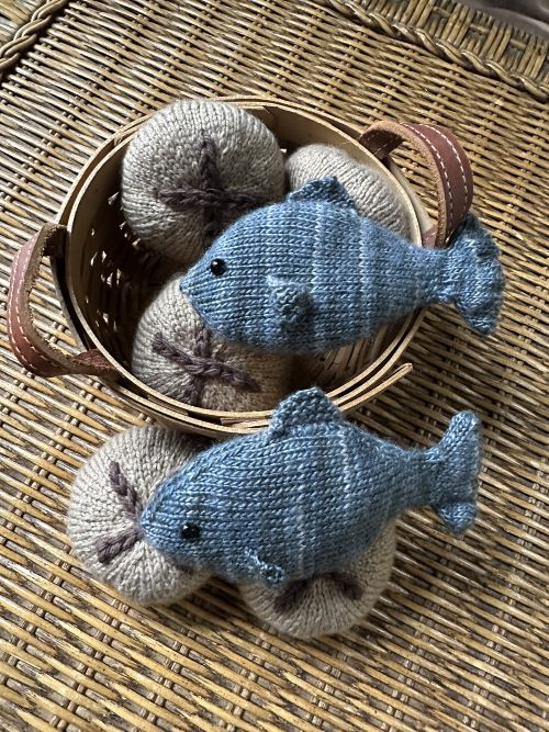 Behind this amazing fish and loaves pattern is Jennifer Tricarico! It has the knitting gauge of 8 stitches and 12.5 rows = 2.5 cm. It is worked with sport yarn and a US 1 knitting needle.