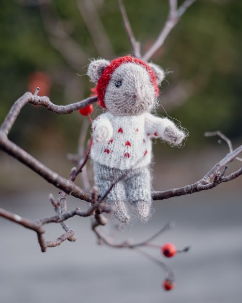 Helene Rønquist Knutsen has designed this mouse to be decorated on your Christmas tree. It is worked from the head and down, i.e., you start in the back of the head and work towards the tip of the snout.
