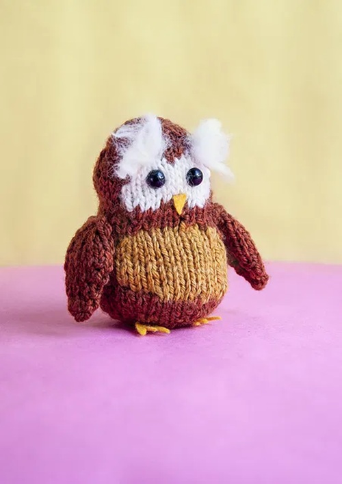 Louise Walker has knitted this vintage color-palette owl using aran-weight yarn and US 8 knitting needles. The knitting gauge has 18 stitches and 24 rows = 10 cm, which is made using aran-weight yarn and US 8 knitting needles.