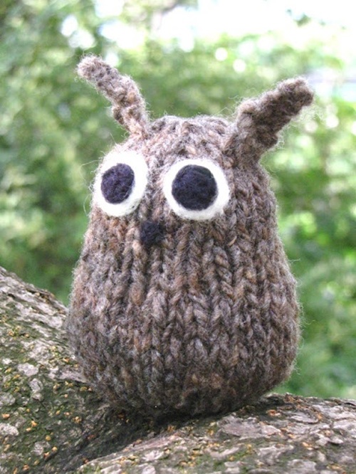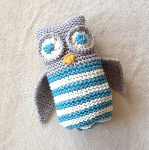 This owl by Egret Effects has a slightly detailed look with soft shaping. It has the knitting gauge of 19 stitches/28 rows = 4″ in stockinette, and it turns out to be a nice choice when you want something a little special.