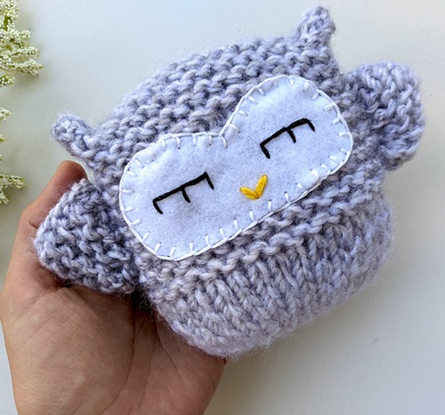 A white and cozy owl by Mama in a Stitch with a soft, modern feel is an easygoing pattern that is suitable for slow knitting days. You can knit it in any color yarn using knitting needles of US size 15.
