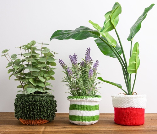 Have a look at these knit plant cozies by Yarnspirations are simple and useful covers designed to fit a variety of plant pot sizes. It has clean stitching and an easy shape, making it suitable for everyday home décor. Plus, it adds a new look to your old plain pots.