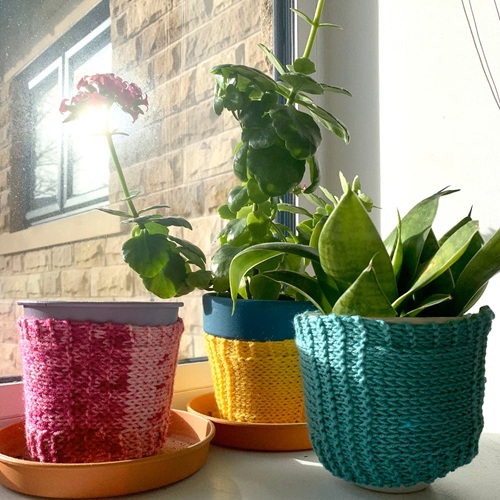 5. Herringbone Plant Pot Cozy Knitting Pattern
