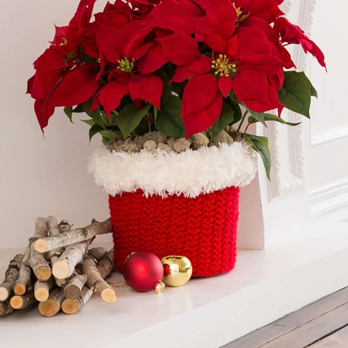 Looking for a simple way to dress up your plant pots for the holidays? This knitted Christmas pot cozy pattern is a simple way to decorate plant pots for the holiday season. Check out Yarnspirations for complete instructions.