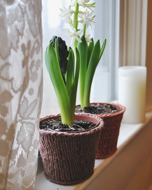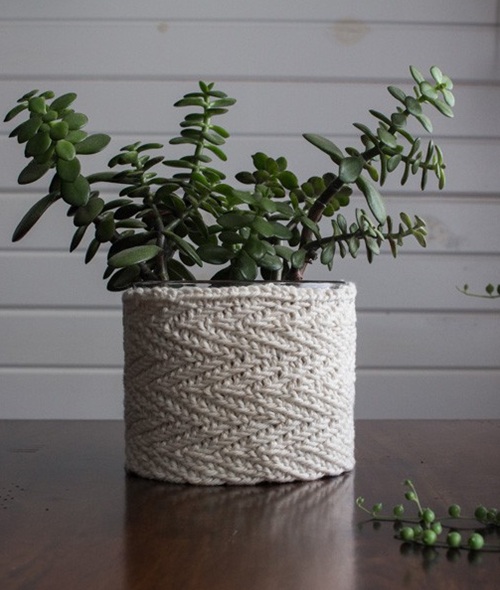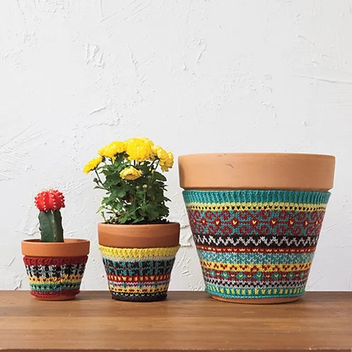 Let your plant grab everyone’s attention with its unique and stylish cover. It uses a fair isle stitching technique, which surely brightens up your home decor with its colorful and eye-catching pattern. You can place them on the windowsills, on a shelf, or on your center table. Check out Knit Picks for complete instructions.