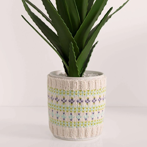 Want to add color and design to your plant pots? Then, Yarnspirations is your one-stop for it. It uses simple colorwork to create a classic and decorative look. You can knit it for yourself or gift it to your plant-loving friend.
