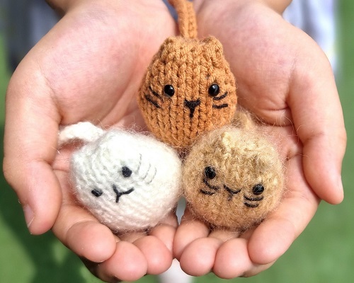 Use up the leftover yarn from your big project and make these 4 cm mini cats designed by A knitter. You need DK yarn in three different colors and a US 2½ knitting needle.