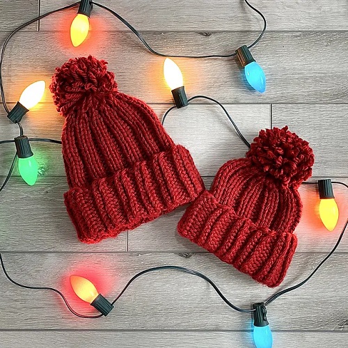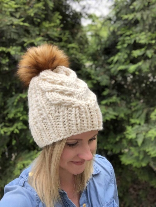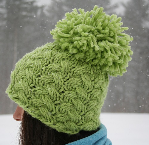Check out this amazing jumbo pom pom hat from Ravelry. It has a beginner-friendly pattern, making it easy for new knitters