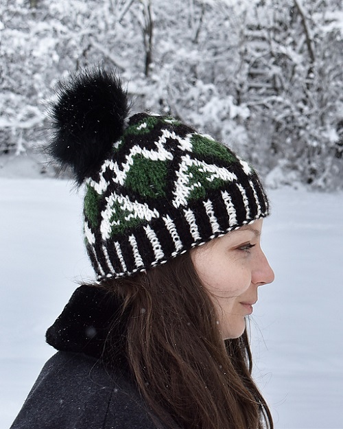 Are you an intermediate in knitting? Then you can make this wonderful Fair Isle knit hat, which is topped with a colorful pompom in cheery hues, to add some color to the season from Yarnspirations.