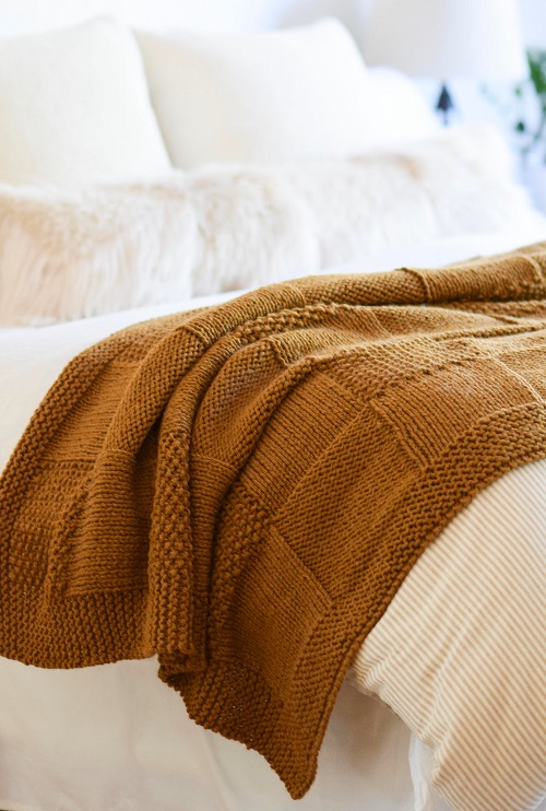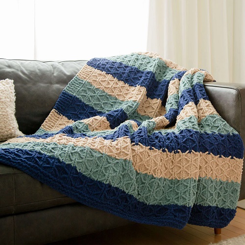Lion Brand shares a unique pattern that allows you to try a variety of techniques. Whether you make it in neutrals or bright shades, the blanket turns out warm, stylish, and perfect for adding to your home.