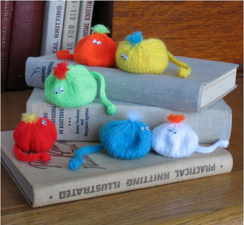 The squidgy rainbow beanbugs by Jean Greenhowe are small, soft, and colorful little toys that are fun to knit and even more fun to display. Their round, bean-like shape and bright colors make them eye-catching and great for using up leftover yarn.