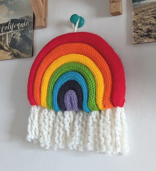This mini knit rainbow wall hanging from Savla is a simple, colorful project that adds a cheerful touch to any room. The finished piece looks adorable on a wall, door, or nursery shelf, and its compact size makes it a great beginner-friendly décor project.