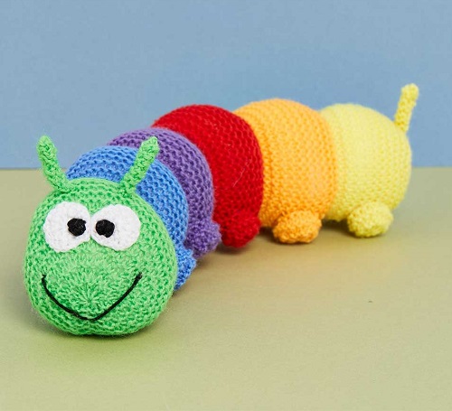 Is there anything more adorable than a squishy, colorful caterpillar made entirely of different colors? This pattern is designed by Amanda Berry. All you need is a 3.5mm straight needle and 1 ball of 100% polyester in a different color.