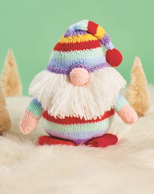 Bring Christmas vibes to your home with these cute rainbow gonks by Val Pierce. You can use this cheerful gnome that you can display year-round, or you can also gift it. All you need is DK yarn with a 3.75 mm needle and some toy stuffing.