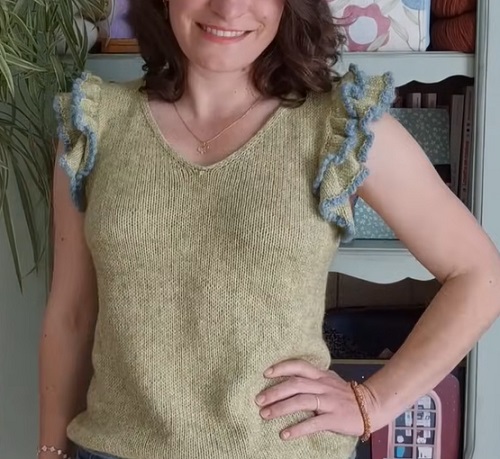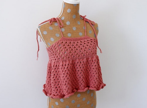 Stephaline made this sleeveless, spring-summer Bohème top using sport-weight yarn. A US 4 (3.50 mm) needle size is used. The added video is useful while knitting.