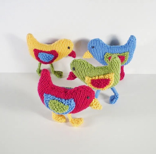These small knitted birds by Frankie Brown are cheerful and fun to place around your home. Use them on shelves or tables to add color and make your space feel lively during the spring season.