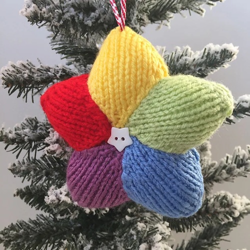 Looking for a colorful and festive knitting project? Then check out this rainbow festive star by Amanda Berry. You can then use multiple colors using pastel or vibrant hues. And not to mention, two stars are sewn together to make the hanging decoration.