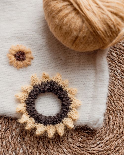 7. Knitted Sunflower Scrunchie