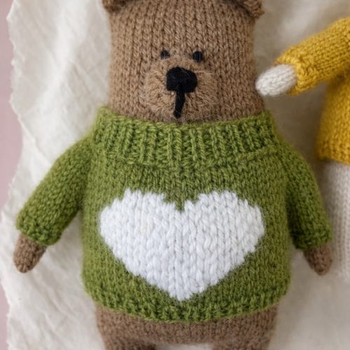 Knit up a teddy’s sweater in red, making it all ready for Valentine’s, and gift it to your partner. It includes step-by-step instructions and a video available on Maylily Knitting.