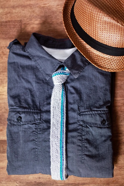 Love clean lines? Then have a look at this simple necktie by Esther Kate. The simple garter neck tie is all about it. Made with basic garter stitch, it has a soft, textured look that looks neat for everyday wear. All you require is DK yarn and a 6 – 4.0 mm needle size.