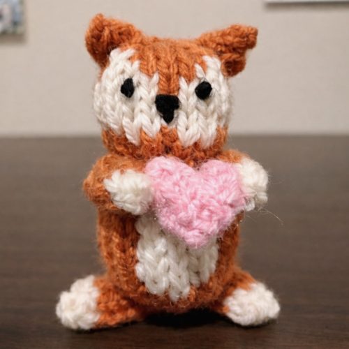 Mackenzie W. King has designed the perfect toy for Valentine’s Day that uses extremely simple color-changing. The knitting gauge is 30 stitches and 30 rows = 10 cm using US 3 knitting needles.