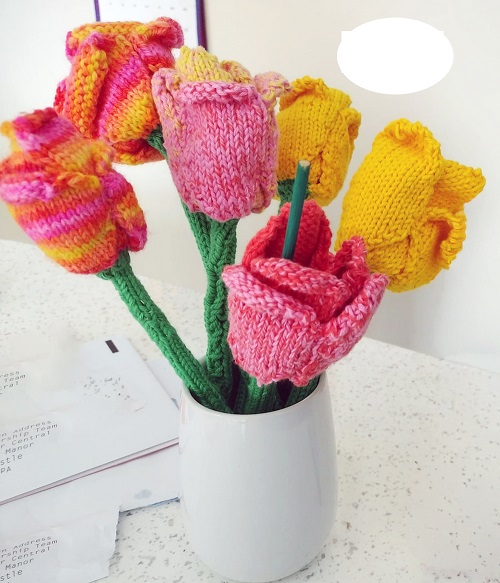 Known for their simple shape and bright, cheerful colors, these Knitted Tulip Free Patterns are great to use leftover yarn.