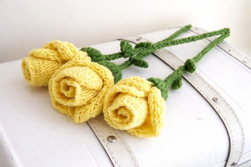 The knitted roses pattern by Ellen Kapusniak shares a creative way to make long-lasting floral gifts for Valentine’s Day. These roses can be used individually as embellishments or decorative accents for home décor and accessories. You can experiment with different yarn weights and colors, making each rose unique.