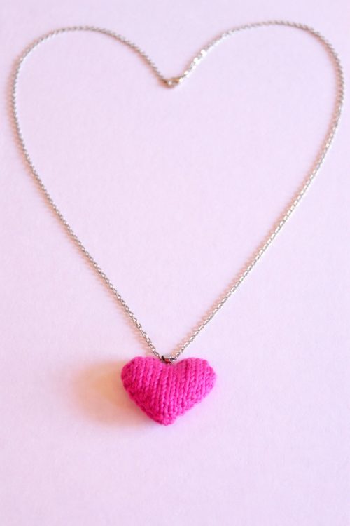 This knitted heart necklace from Lauren is a delicate and creative Valentine’s Day project that turns simple knitting into a charming accessory. It has a small heart motif attached to a chain, making it a lightweight piece of handmade jewelry suitable for everyday wear.