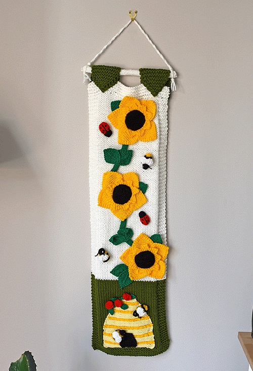 4. Knitted Sunflower & Bees Wall Hanging