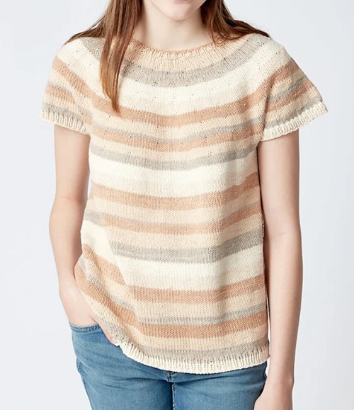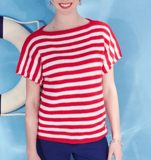 This Yarnspirations nautical-themed shirt is a simple, easy-wear with a clean look and comfortable fit. It is perfect for lazy summer days when you are book-reading or bored by the long days.